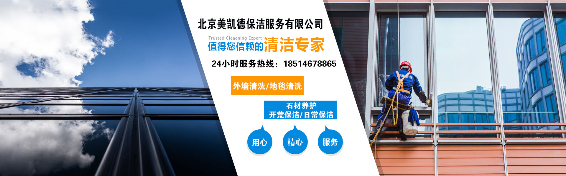 北京美凱德保潔服務有限公司是北京一家大型、專業(yè)的保潔服務公司,北京樓宇外墻清洗服務商,21年保潔專業(yè)服務經驗,100多家合作單位遍及全市,每年保潔面積300萬平米,在此基礎上我公司積累了豐富的經驗與實操技術,在同行業(yè)中處于領先地位。